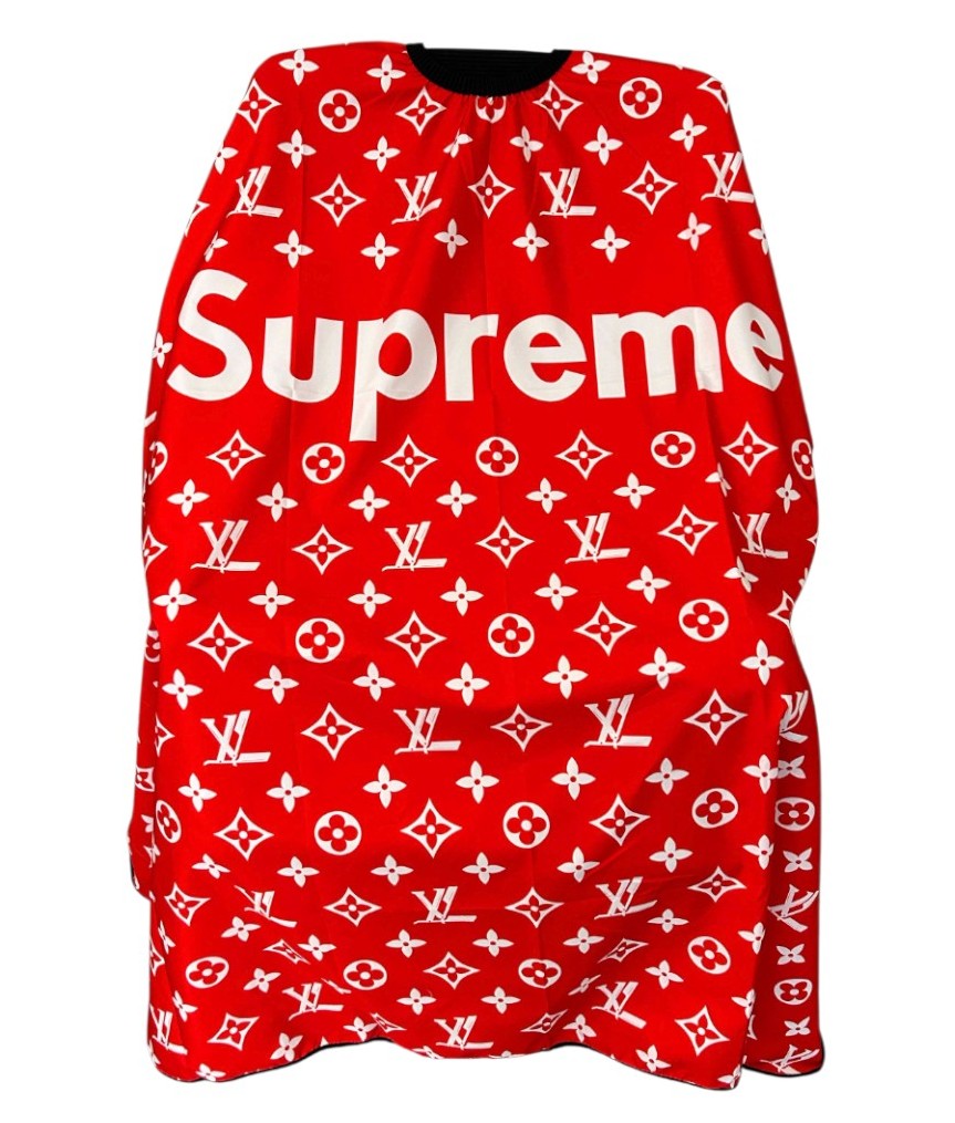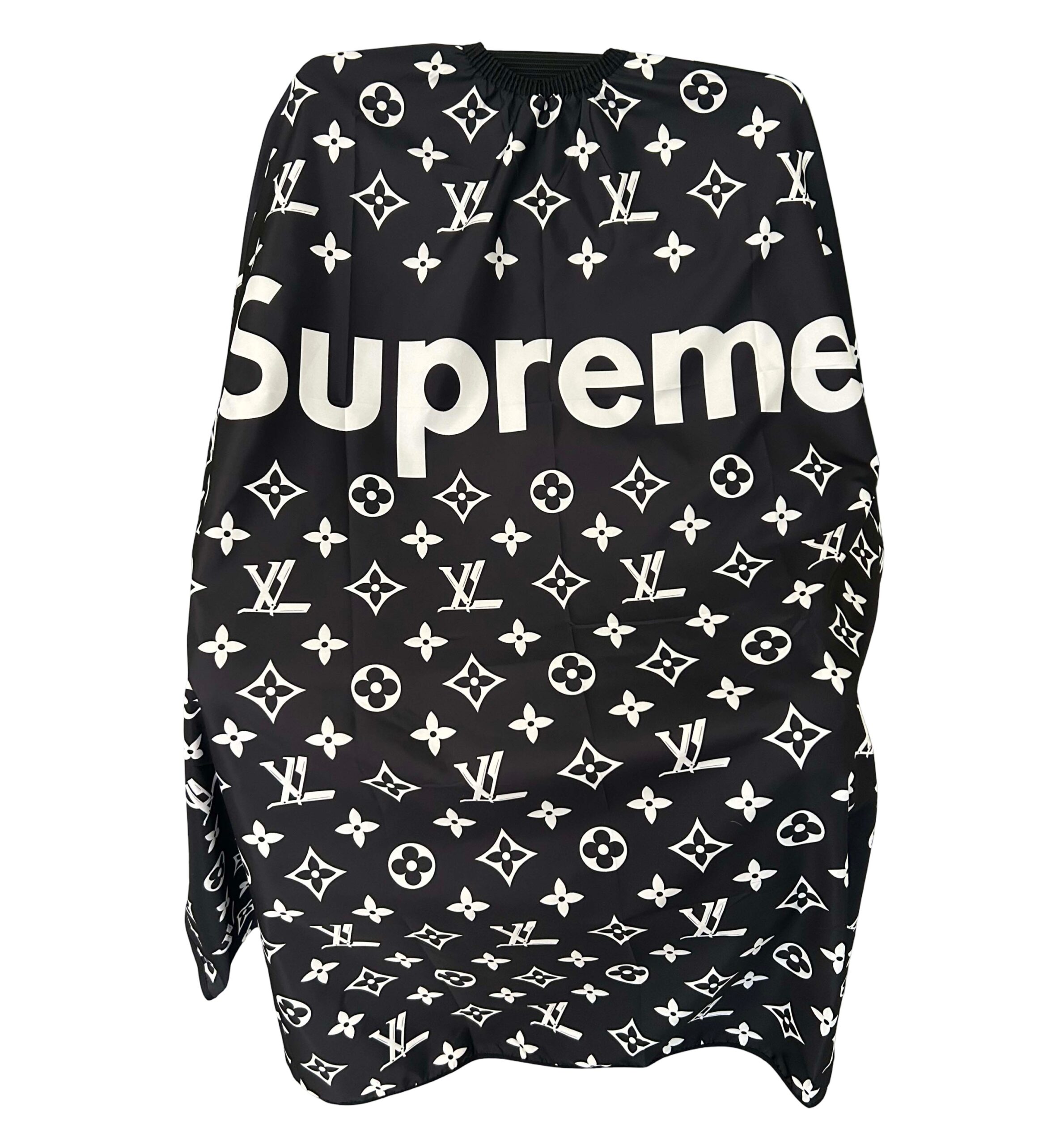 A Sup barber cape with a XL neck length that can fit any size neck. Made of polyester fabric that is durable, water resistant, and light weight to keep your customers comfortable, and cool through out the whole haircut.