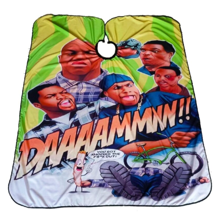 A cool Friday Barber Cape with an XL neck length that can fit any size neck.