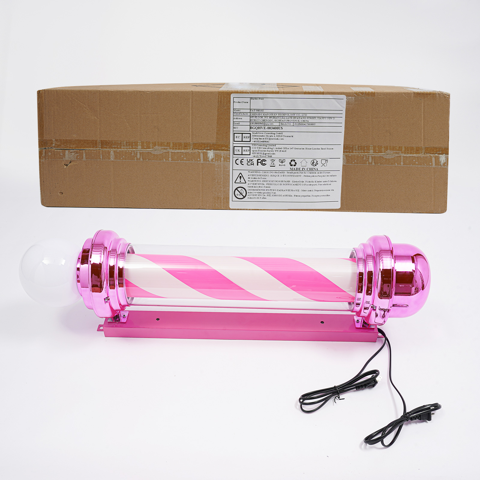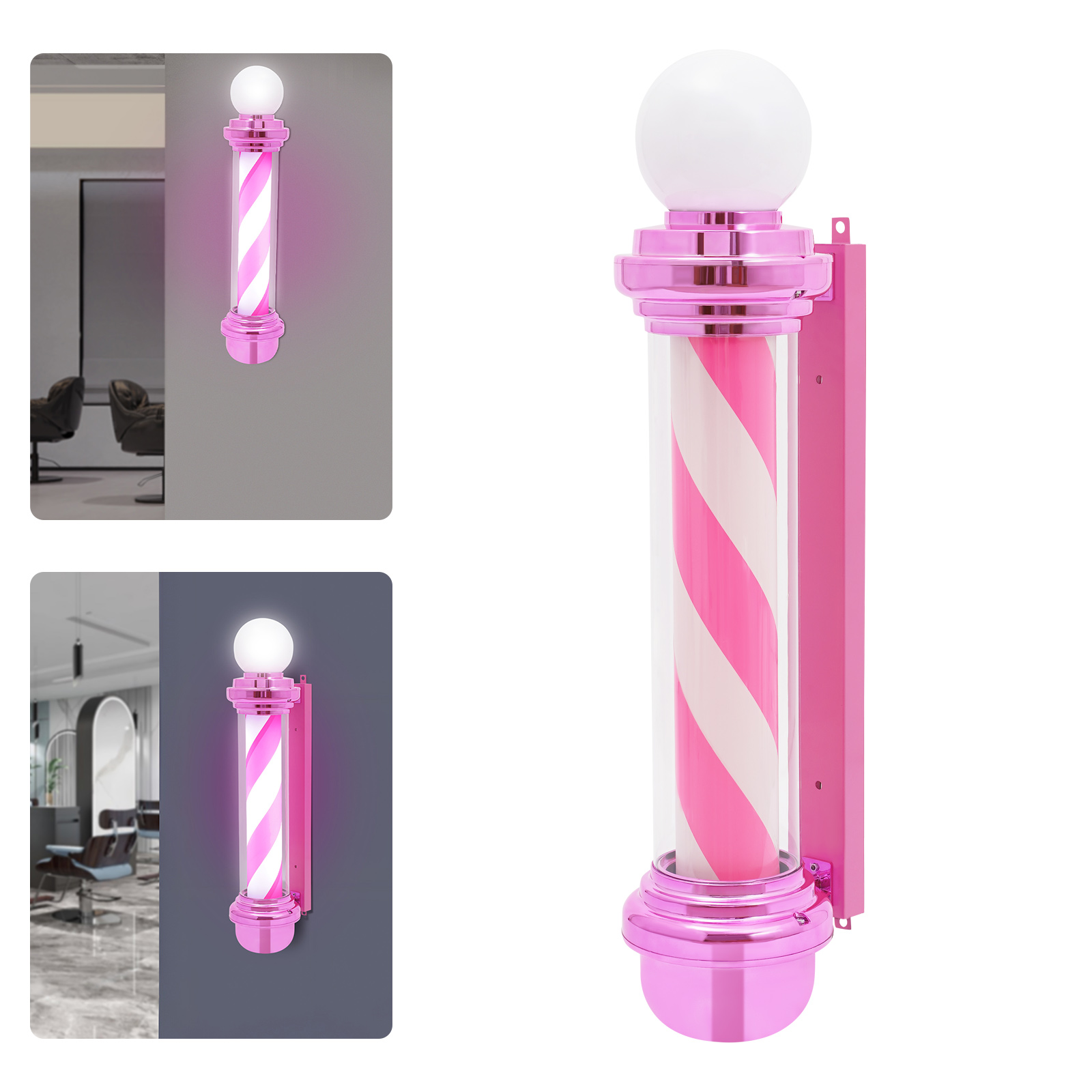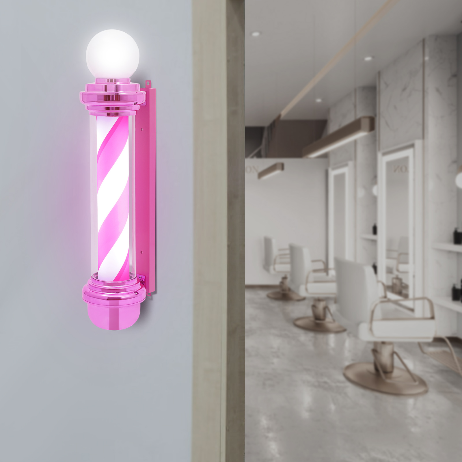 This pink barber pole light adds a bright and colorful touch to your barbershop. Made from premium materials, and with fine craftsmanship. It is durable and rainproof, suitable for both indoor and outdoor use. The efficient and bright LED light will make your barbershop stand out in the neighborhood, attracting more attention from customers.