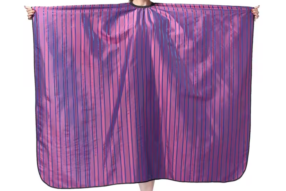 A stylish purple stripes barber cape to add to your cape collection.