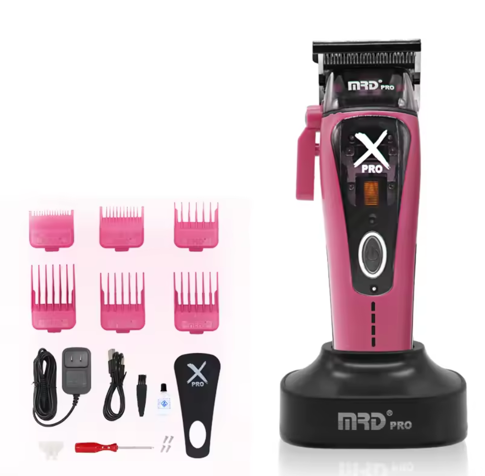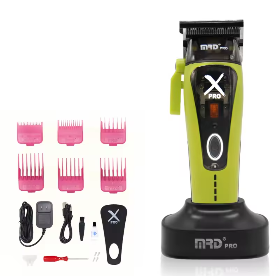 The X Pro Vector Hair Clipper features a cutting-edge hardness of a DLC 1 diamond-coated blade, adjustable zero-gap precision, intelligent torque control, and high-RPM power (8,500–11,500 RPM) within an ergonomic, modular design with a 2 hour run time, and includes magnetic guards.